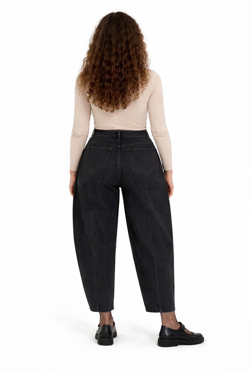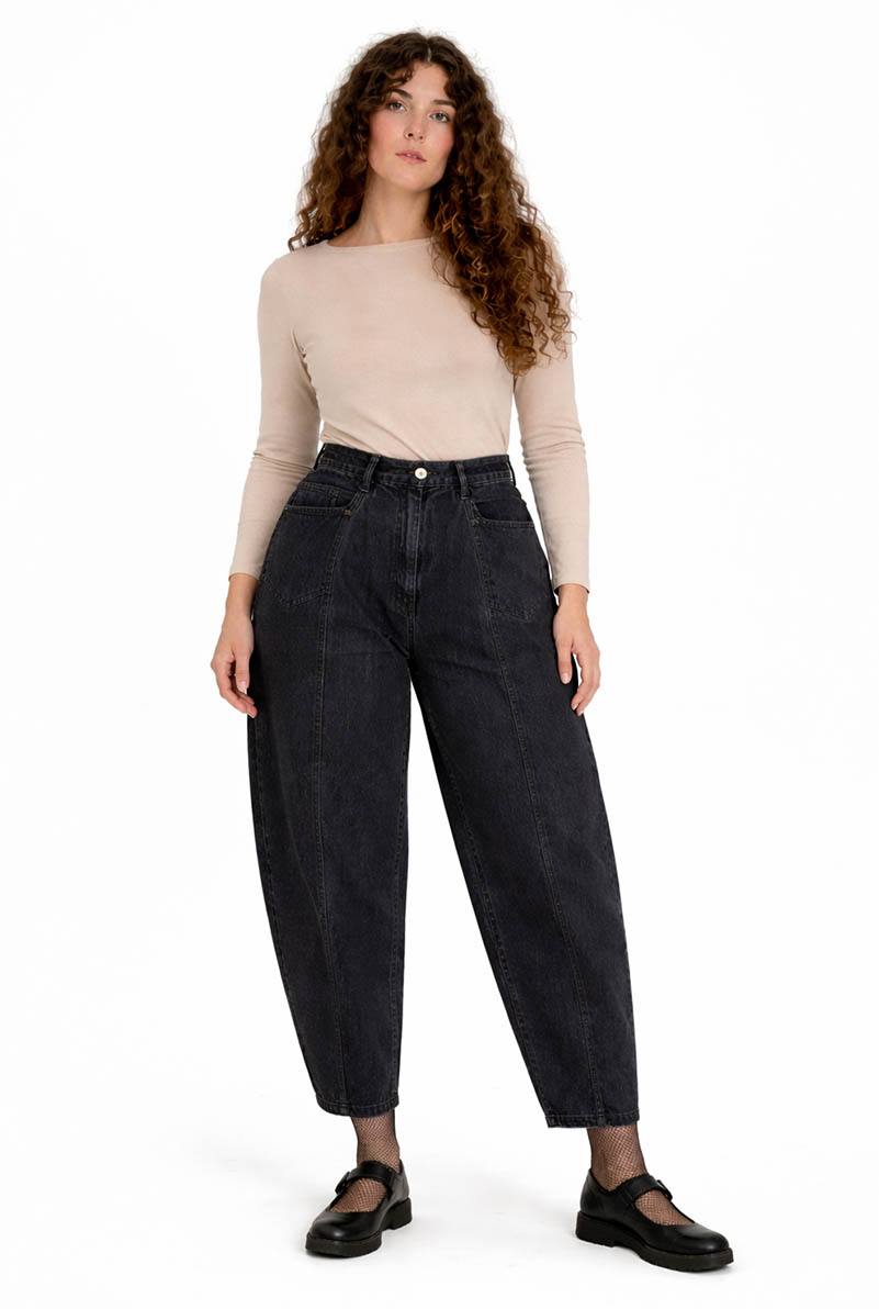 Upcycled barrel jeans with front and back pockets